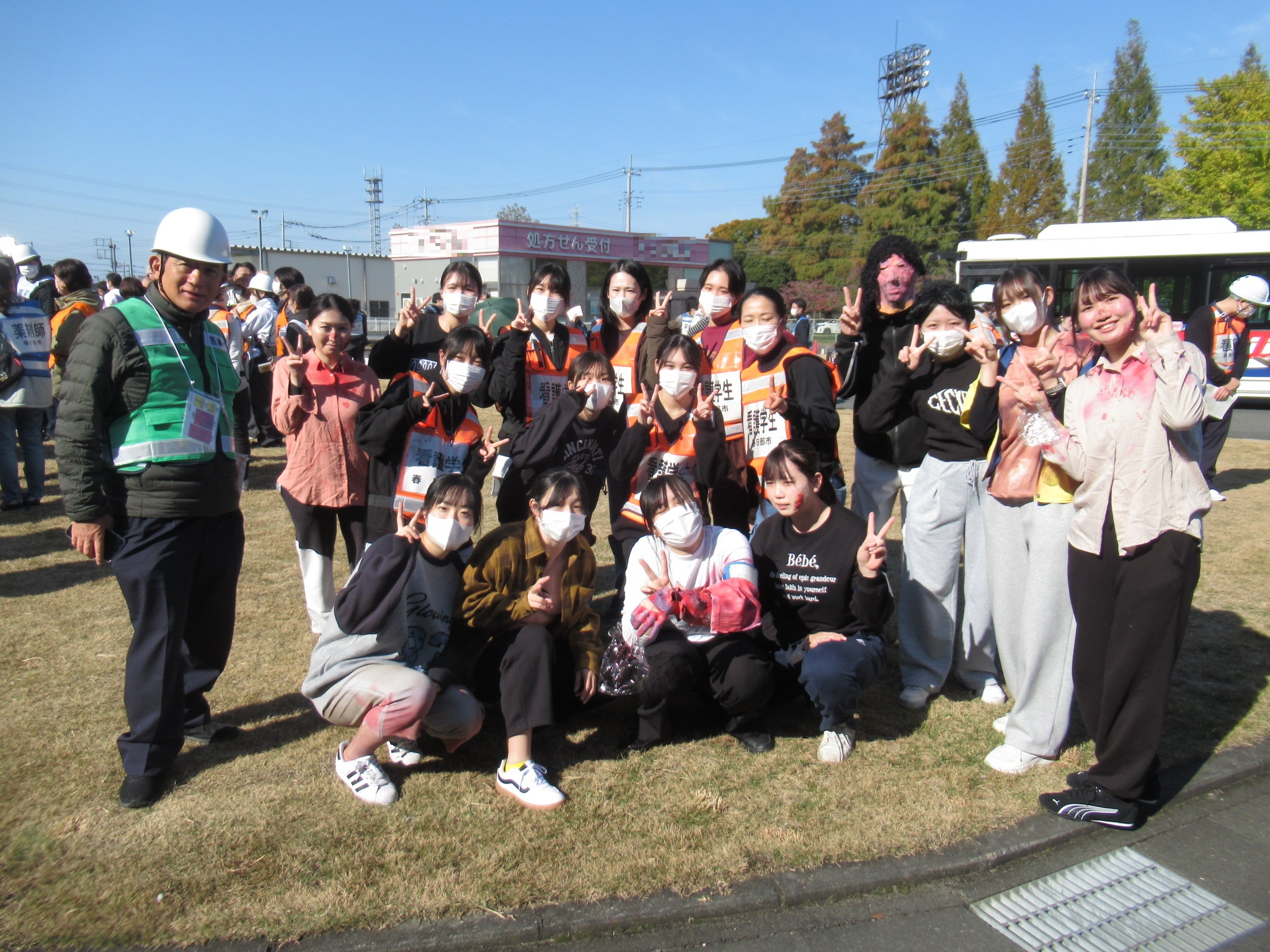 11月16日、市内病院で実施された「災害時医療救護訓練」のボランティアに学生 21名(1年生 16名、2年生 5名)が参加しました。