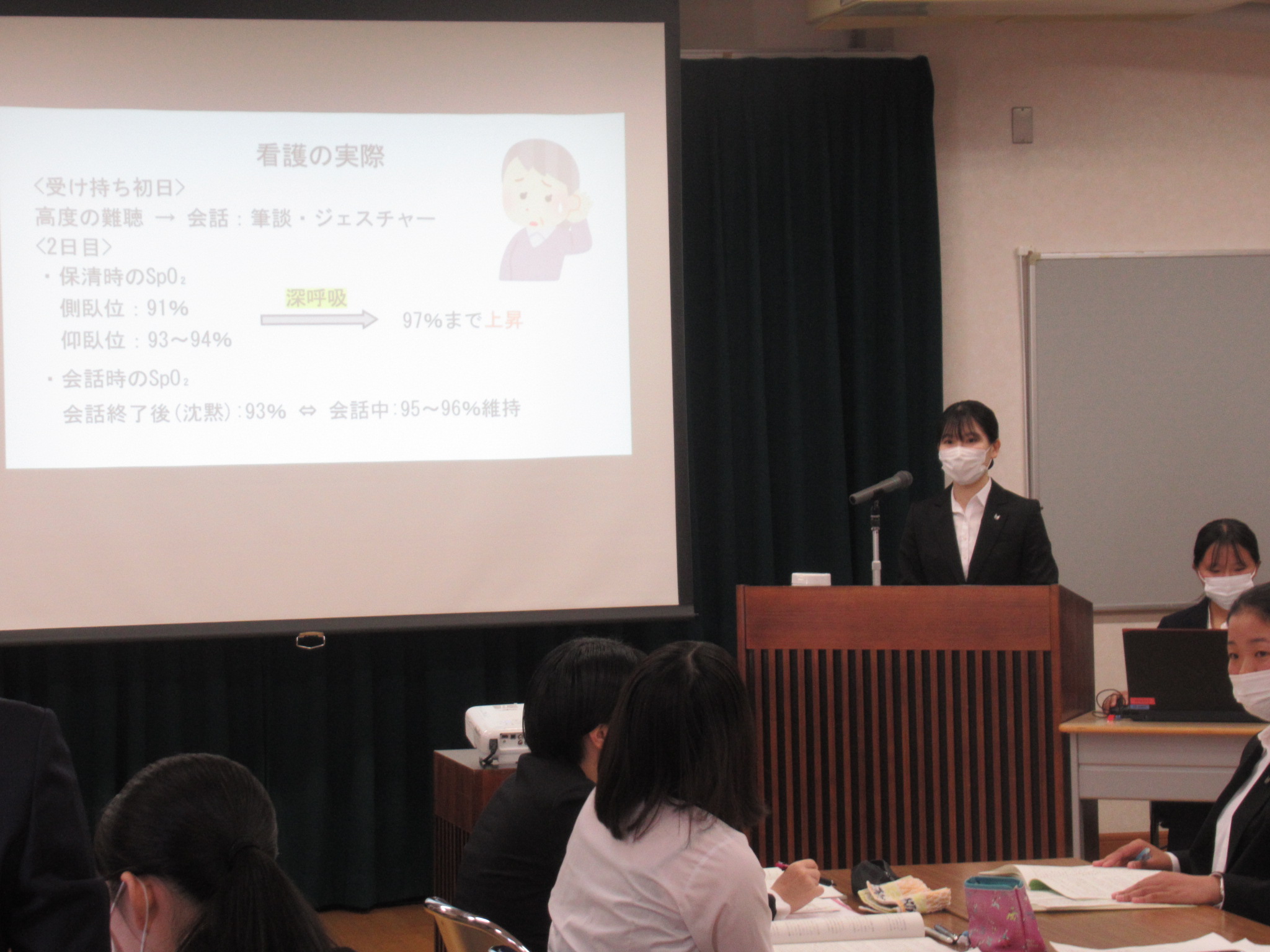 学生たちは、実習での患者様とのかかわりを通して学ばせていただいた事例から研究テーマを選び、時間をかけて論文にまとめ発表しました。