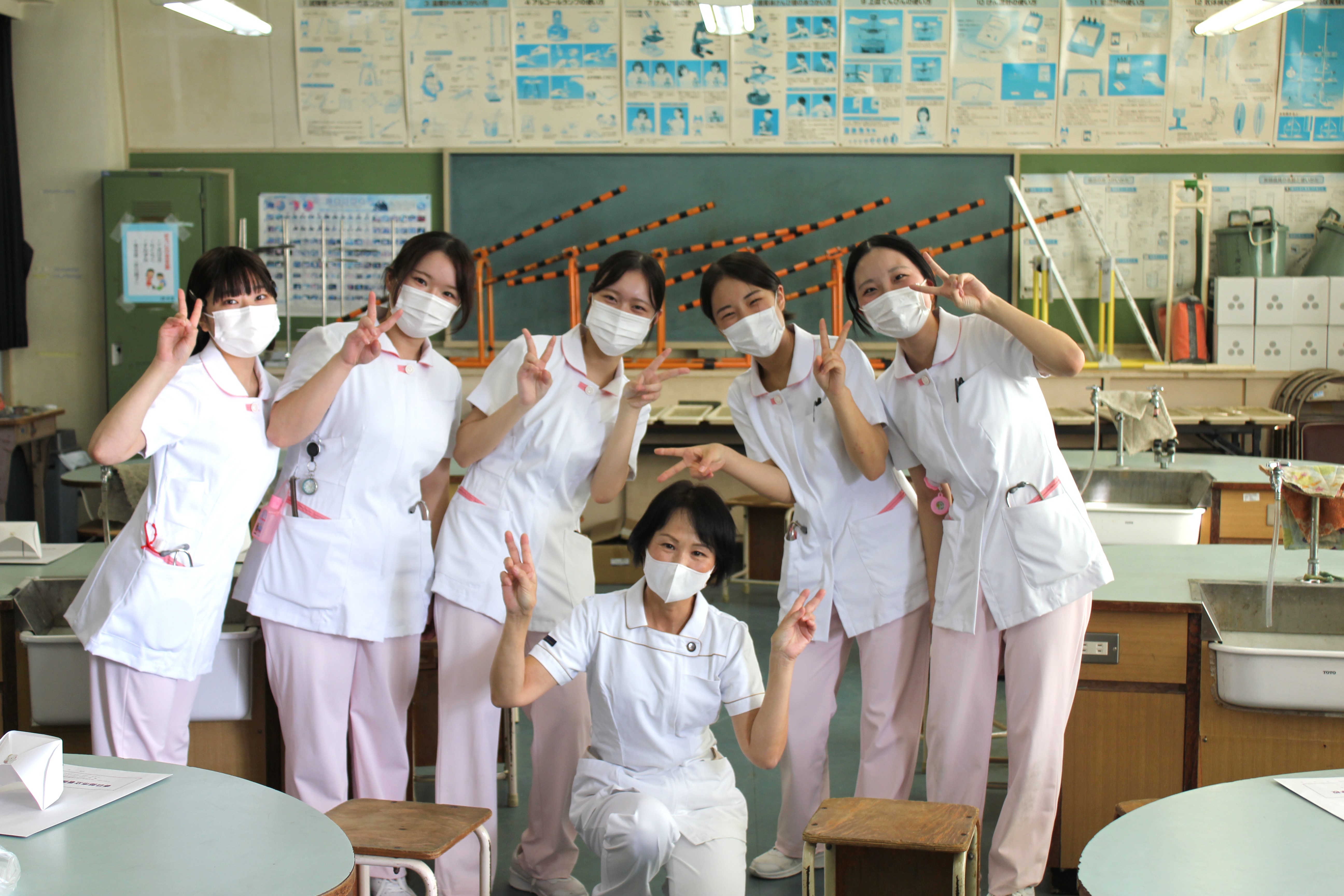 今回の看護体験でも参加した皆さんに笑顔が見られ、また看護師になりたいという感想を聞き、うれしい気持ちと活力をいただきました。なお、今回は本校の一年生が初めて看護体験と質疑応答のお手伝いをしてくれました。