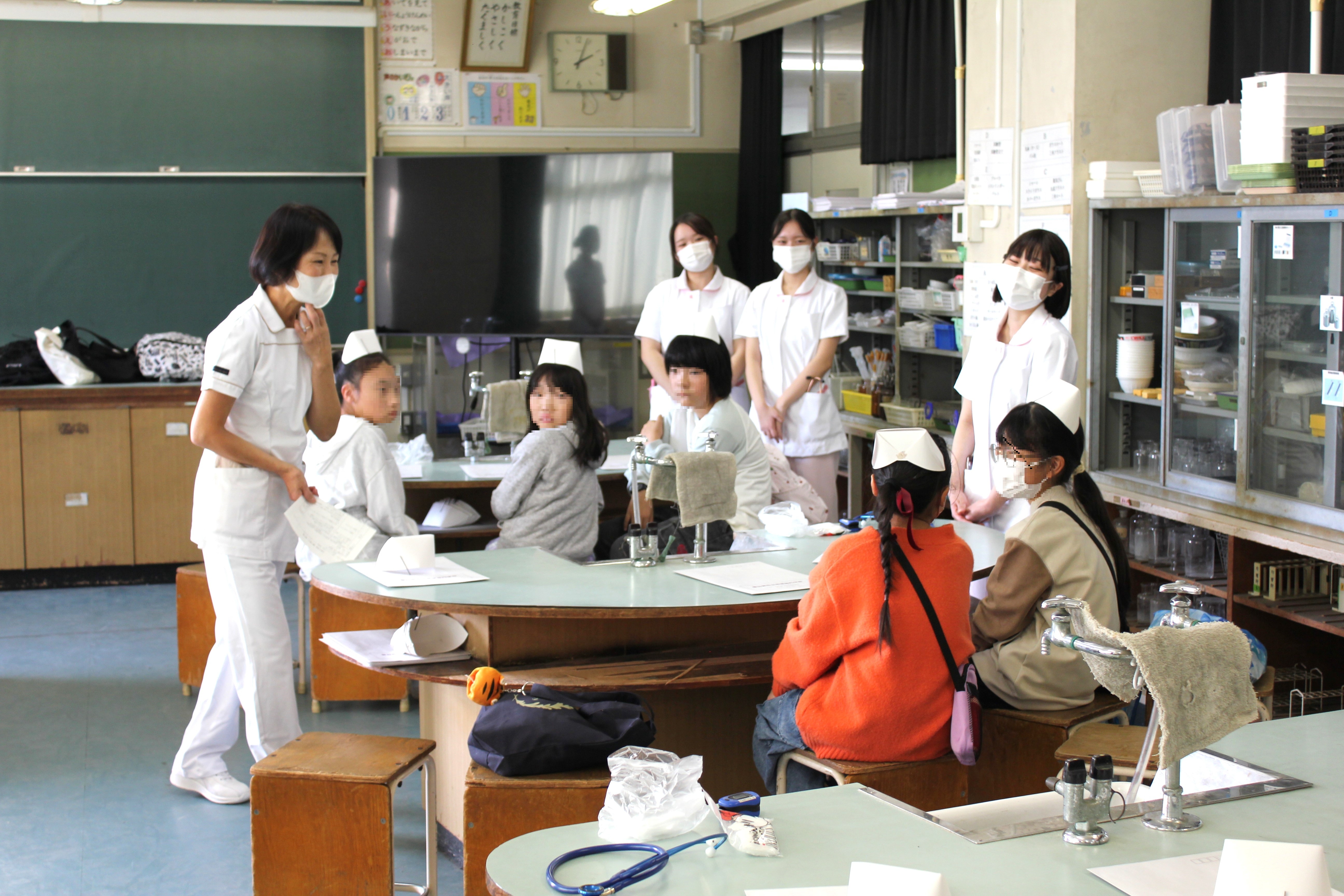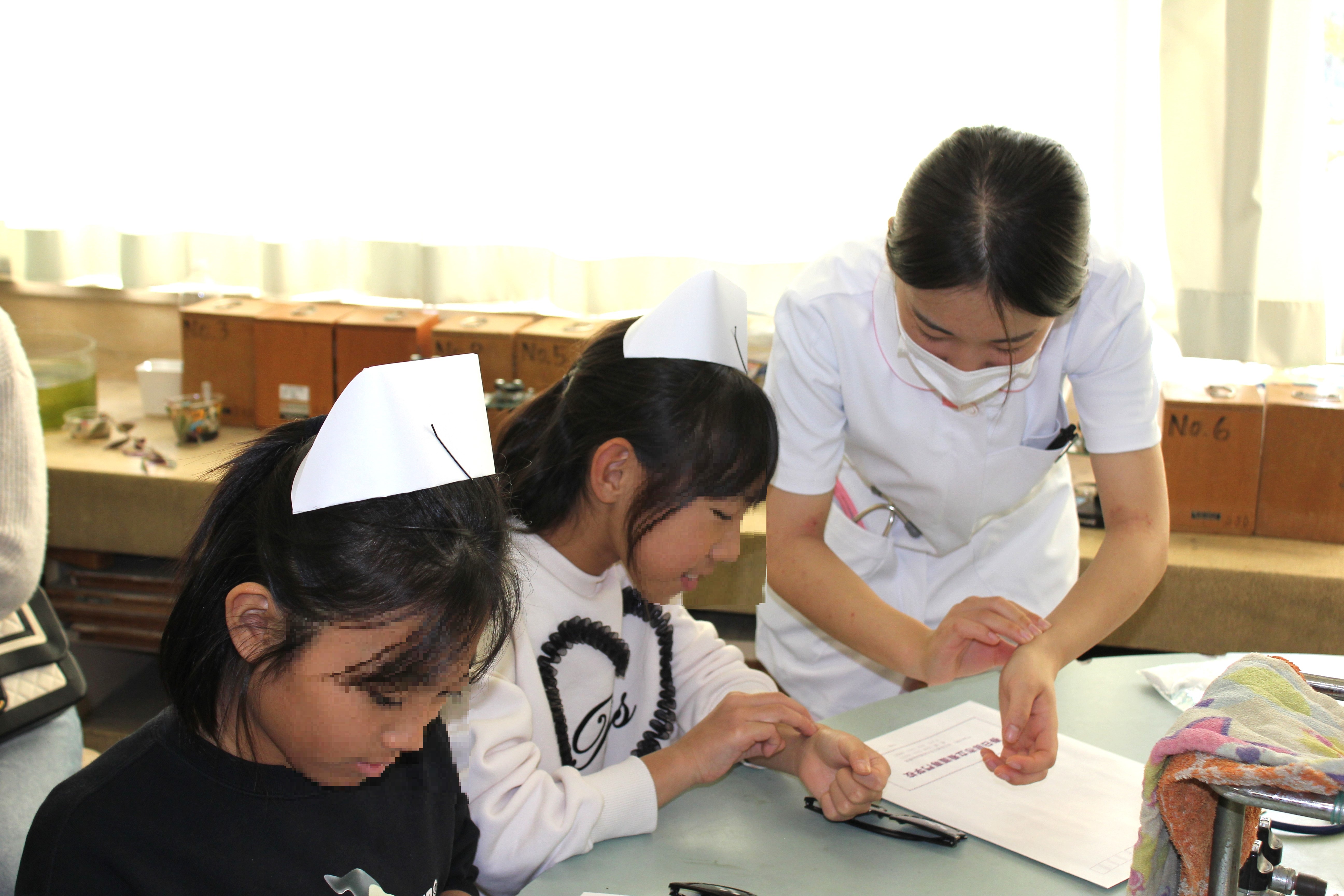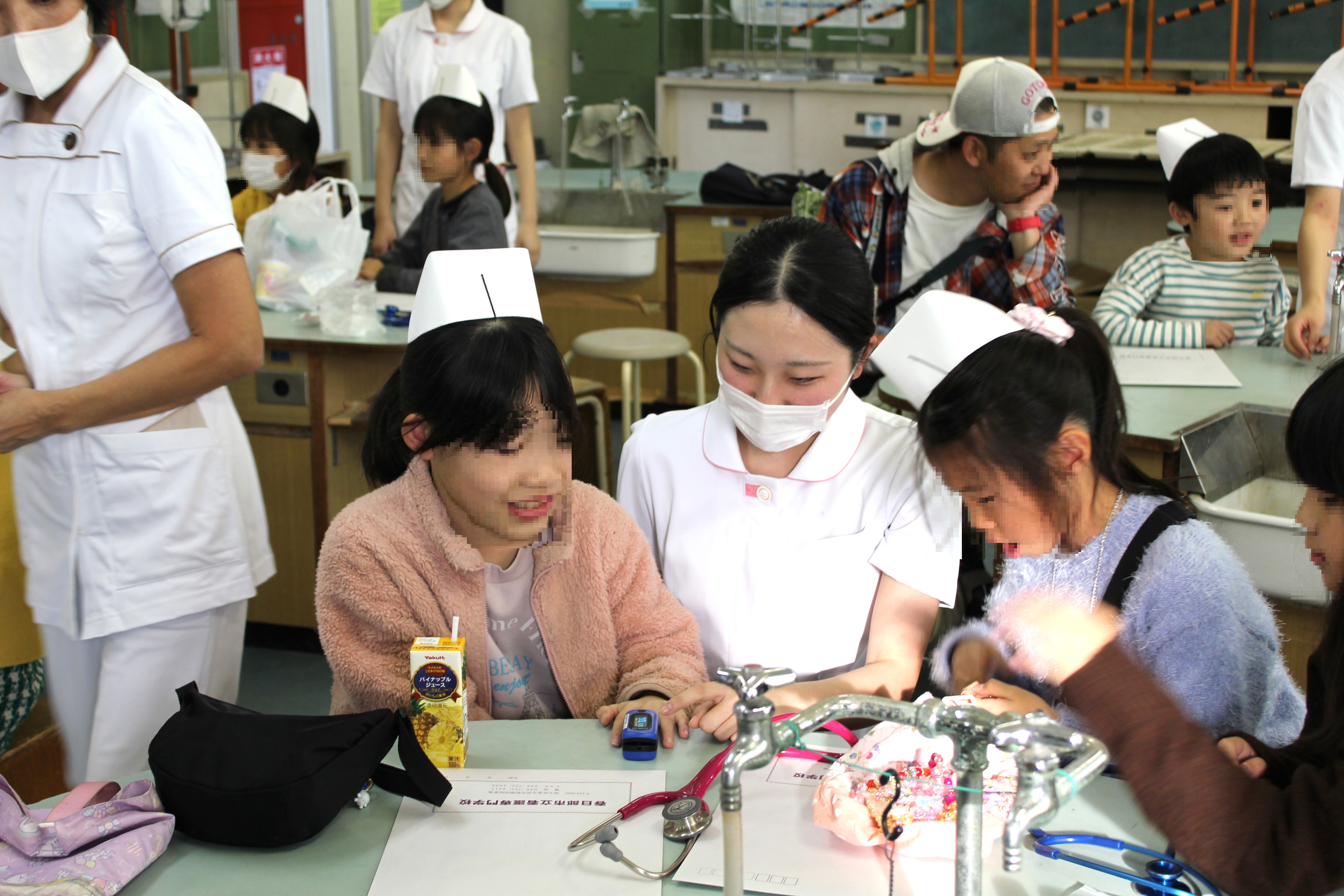 上沖小学校「親子祭り」で、『ナースのお仕事体験教室』のボランティアとして学生たちが参加させていただきました。